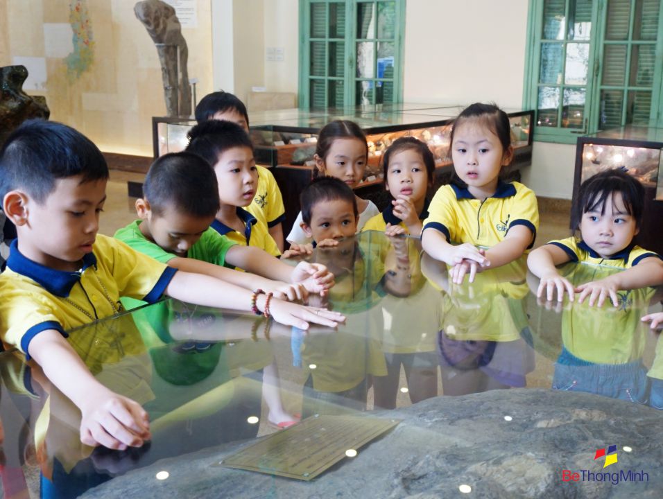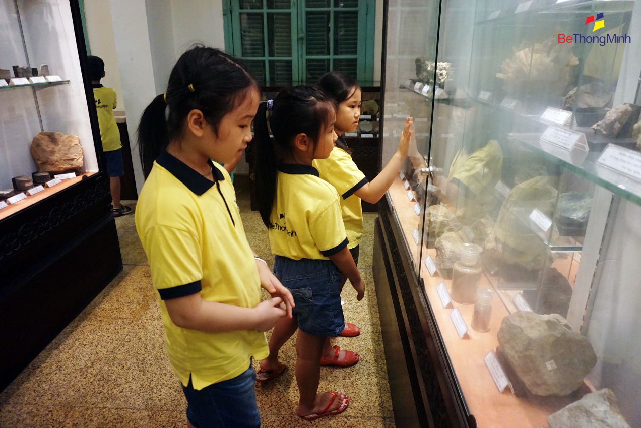 Các bạn nhỏ FasTracKids của Bé Thông Minh đã có một buổi học ngoại khóa vô cùng vui và ý nghĩa tại bảo tàng Địa Chất trong tháng 7/2016 này. Sau những giờ học trên lớp được tìm hiểu về những điều kì diệu của Trái Đất như các loại hóa thạch, các loại đá, về sự sống…… Rồi cấu tạo của Trái Đất, hành tinh mà con người đang sống thì hôm nay chúng tớ đã được xem tận mắt tất cả những điều đó ở Bảo tàng. Chúng tớ đã được chiêm ngưỡng hóa thạch của đùi Khủng Long từ Lào đưa về rồi hóa thạch của con cá và nhiều loại động thực vật nữa. Được biết thêm nhiều loại đất đá mới phân bố trên khắp mọi miền Việt Nam. Thật là vui và bổ ích