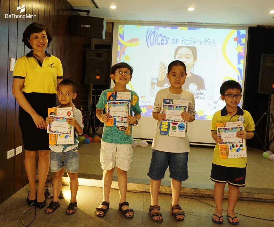 Tối 26/4 tại AVT Center- D9 Hồ Ba Mẫu, trung tâm Bé Thông Minh đã tổ chức lễ trao giải Voices of FasTracKids 2016 với sự có mặt của các bạn nhỏ đã tham gia cuộc thi cùng các quý phụ huynh. Buổi trao giải đã diễn ra trong không khí ấm áp, vui tươi và sôi nổi.