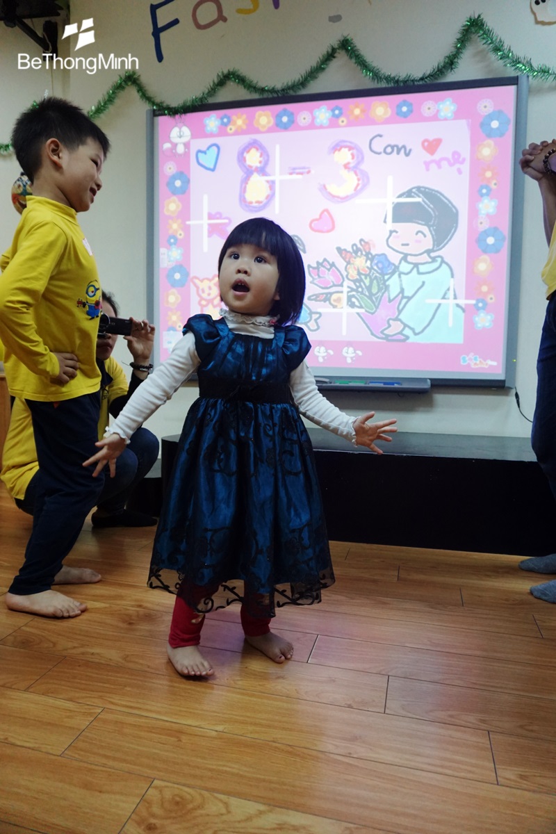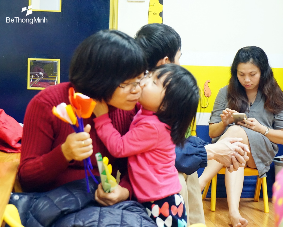 Như một món quà tri ân gửi đến Mẹ trong ngày Quốc tế Phụ nữ . Chương trình ngoại khóa 8/3: “Hạnh phúc cho Mẹ – Vui vẻ cho con” tổ chức tối 8/3/2016 tại Trung tâm Bé Thông Minh đã diễn ra trong một không khí vô cùng vui vẻ, ngập tràn hạnh phúc và yêu thương. Để lại ấn tượng sâu sắc trong lòng các bạn nhỏ và các vị phụ huynh tham dự chương trình. Hà Nội tối ngày 8/3 se lạnh và có mưa phùn, nhưng trong trung tâm Bé Thông Minh lại có nắng ngập tràn và vô cùng ấm áp.